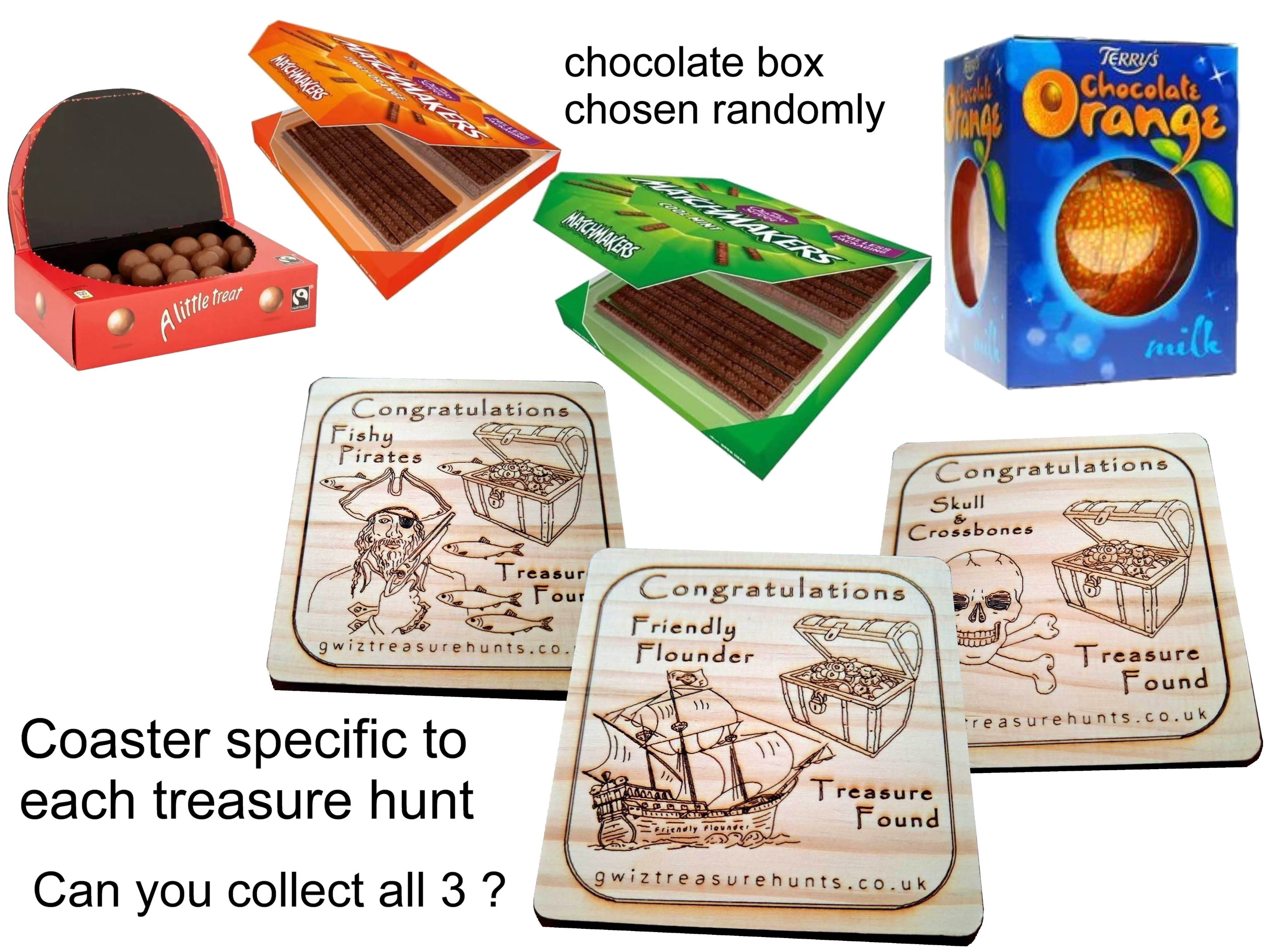 For an idea of size this is the Fishy Pirates treasure box with 2x Chocolate oranges and a full size bottle of wine